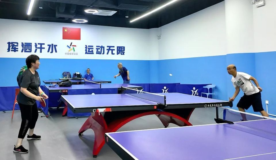 在长征镇社区市民健身中心内,篮球馆、羽毛球馆和乒乓馆均已满场。在乒乓馆,退休老人曹蕾一个利落的反手扣杀得分,她说道:“我们这年纪就爱打乒乓,今天小区老伙伴都约着一起来了。”