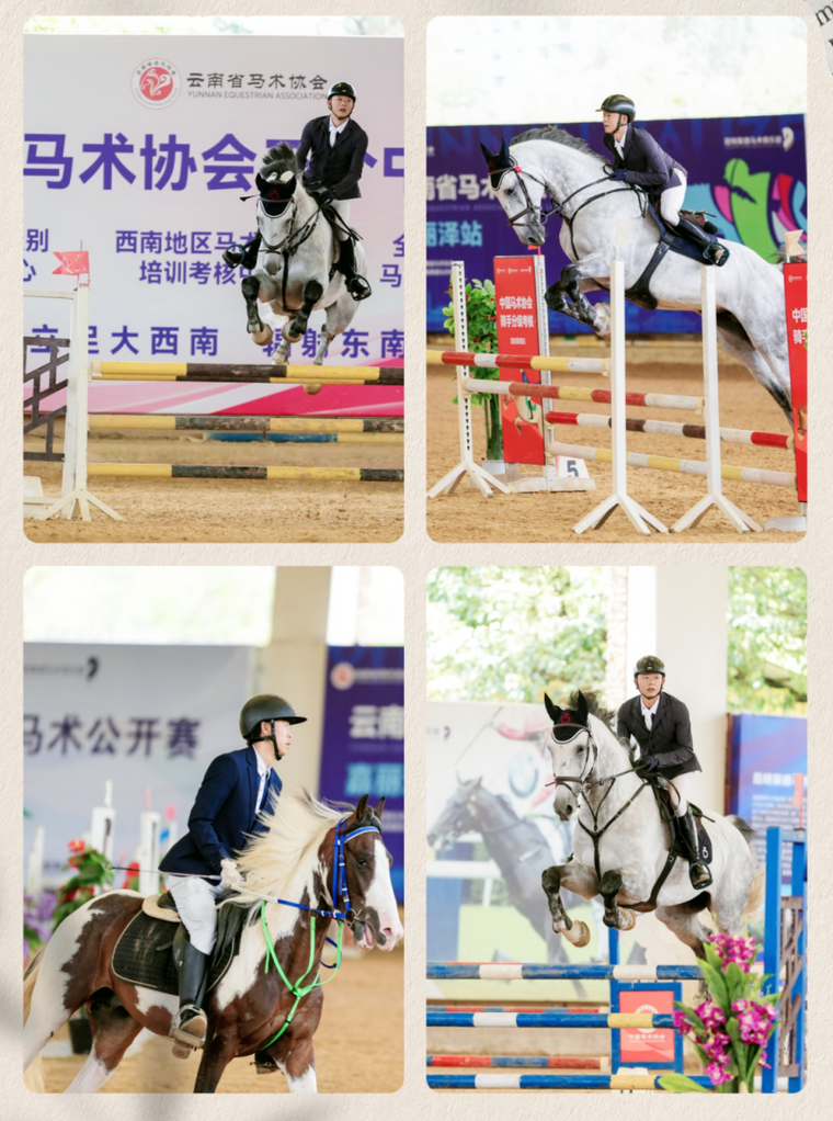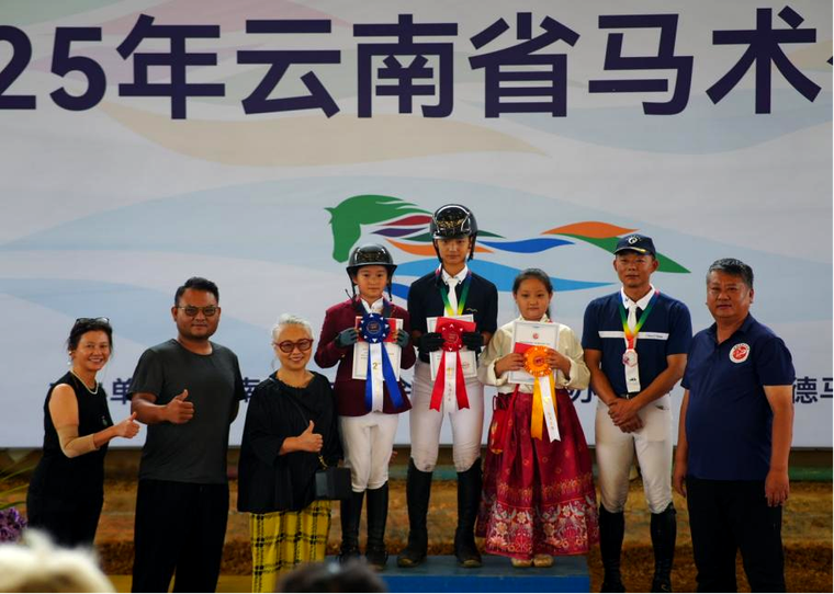 在近日举行的2025年云南省马术公开赛上,宜良县马术协会骑手团队在场地障碍1.2米级别公开赛、场地障碍赛交叉杆级别公开赛中分别取得第三名和第四名的好成绩,为昆明地区马术运动发展书写了浓墨重彩的一笔。
